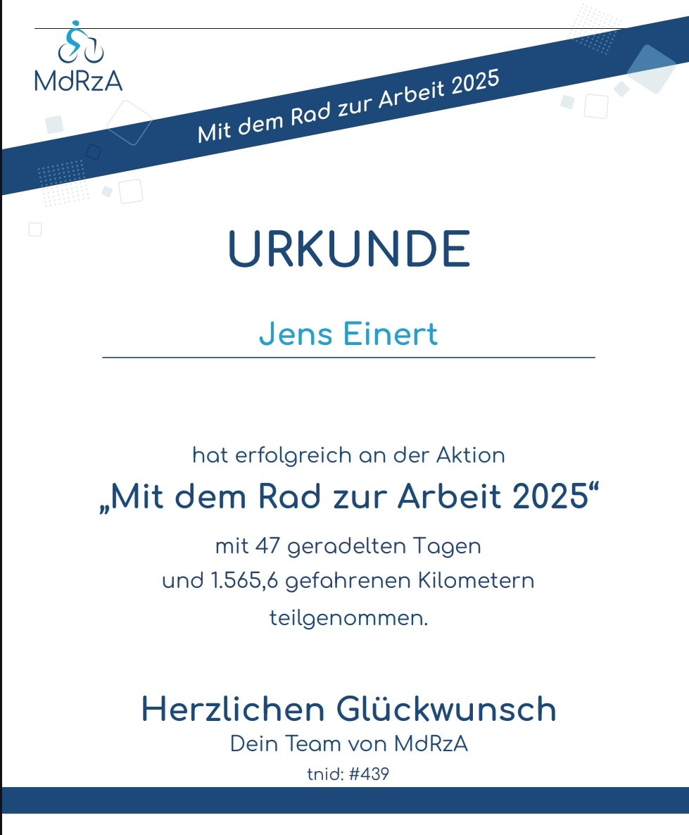 Jens completed the route in two days on his work bike and received a silver trophy for his efforts. His training? Cycling to work as often as possible.